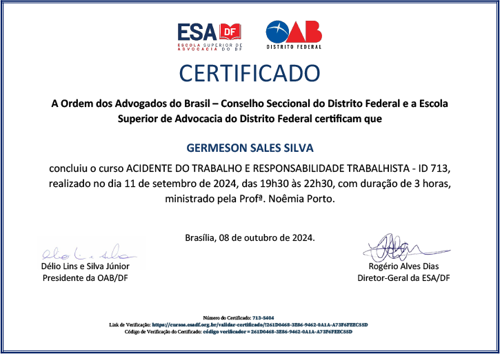 Dr. Germeson Sales, especialista em Direito Trabalhista com vasta experiência, está aqui para proteger e orientar você em todas as situações trabalhistas.
